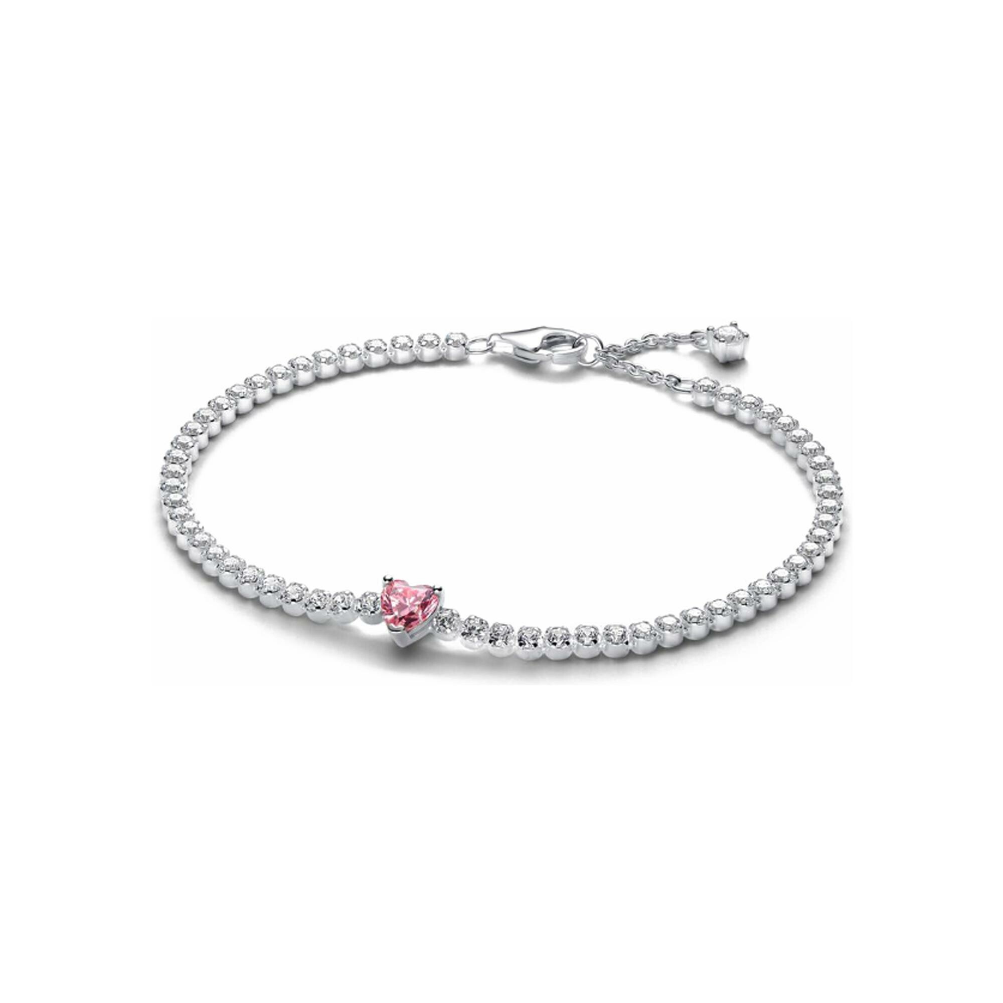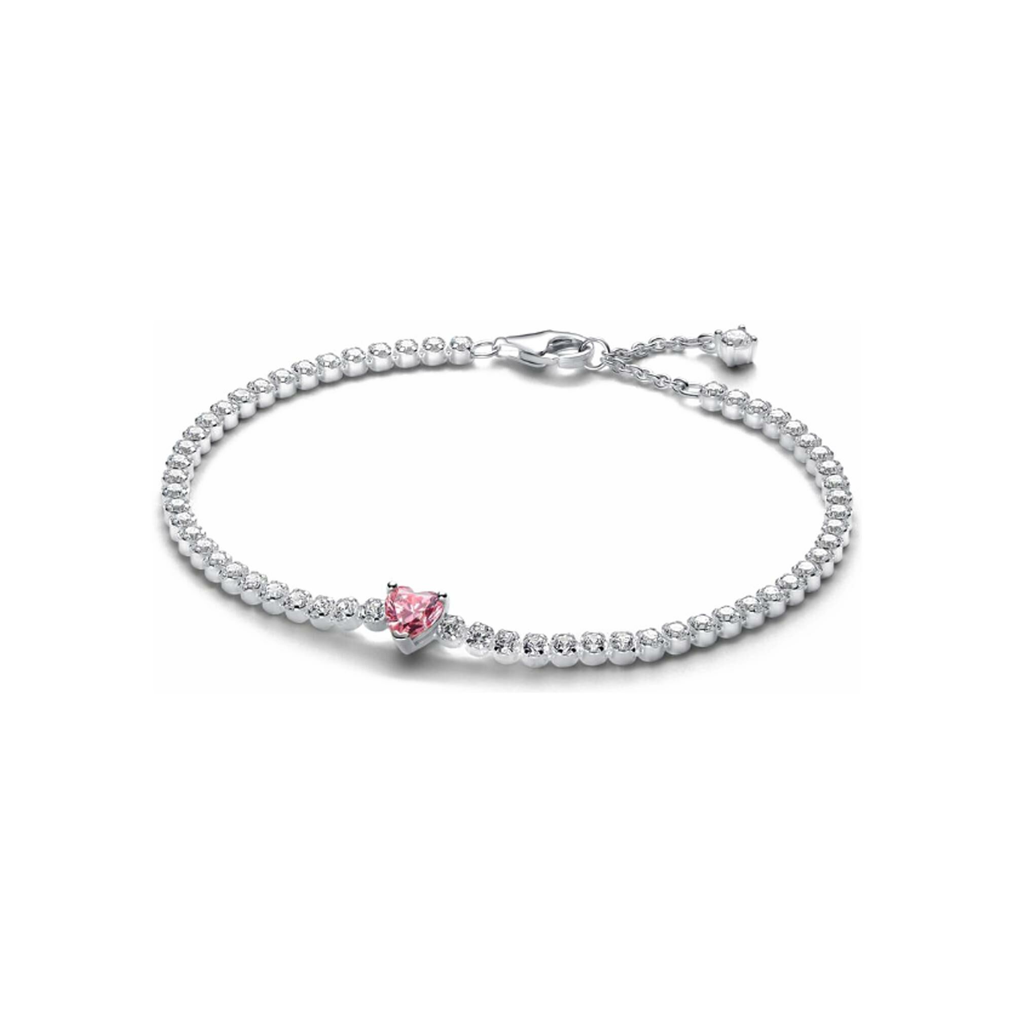 Bracelet Pandora Rivière Cœur Scintillant Rose en argent, taille 18cm