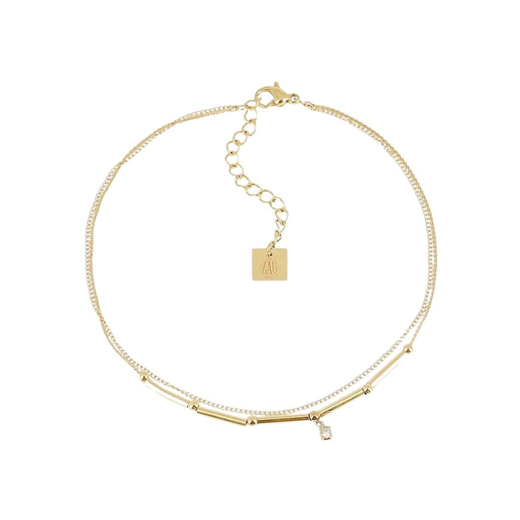 Chaîne de cheville Zag Tube en acier doré et oxyde de zirconium